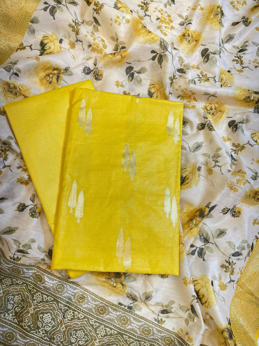 Yellow Pure Mercerise Silk Banarasi 3 pcs Suit Set with Digital Print Dupatta 1000SKL_MP1