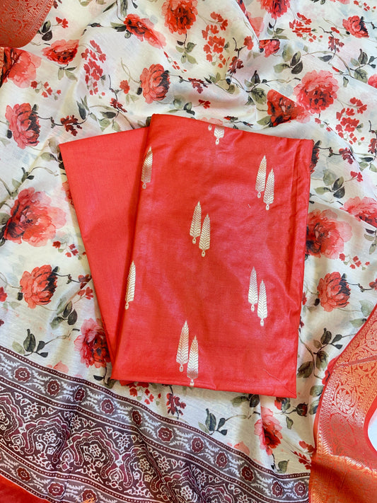 Red Pure Mercerise Silk Banarasi 3 pcs Suit Set with Digital Print Dupatta 1000SKL_MP4