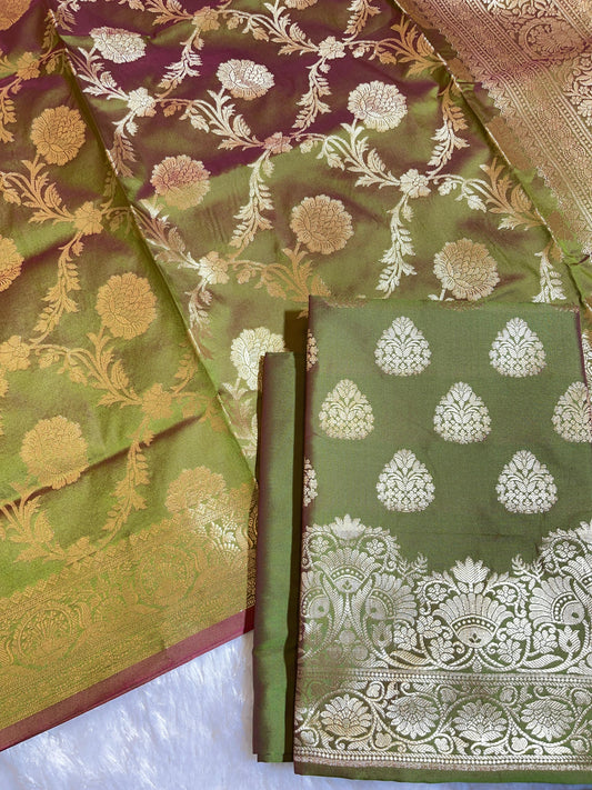 Mehndi Green Semi Katan Silk Banarasi 3 pcs Suit Set 750SHL_SK23