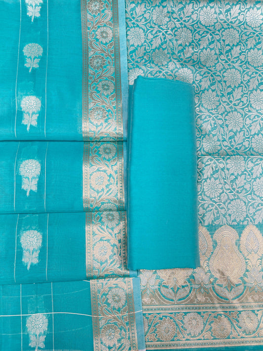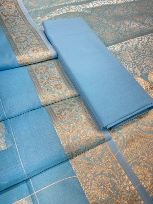 Skyblue Cotton Silk Banarasi 3 pcs Suit Set 680ASD_CS19
