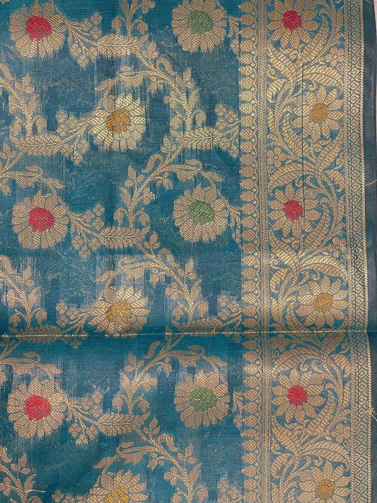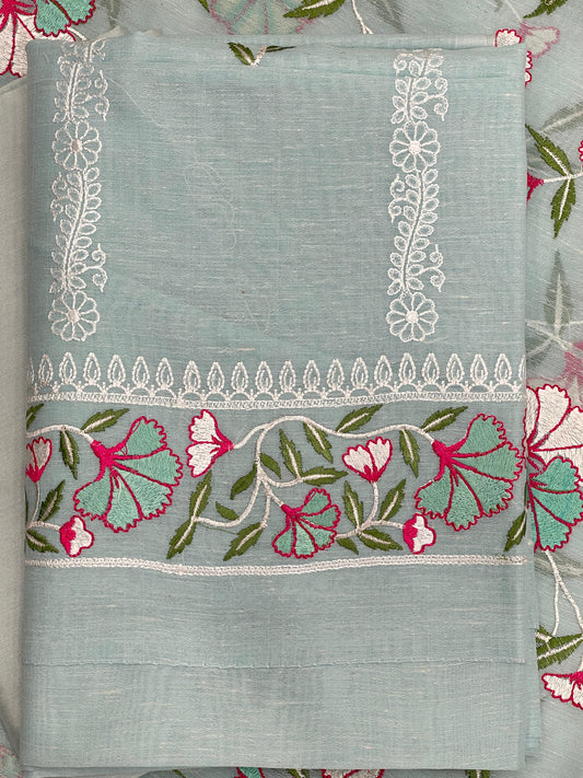 Seagreen Cotton Linen Embroidery Banarasi 3 pcs Suit Set 1200IM_CL4