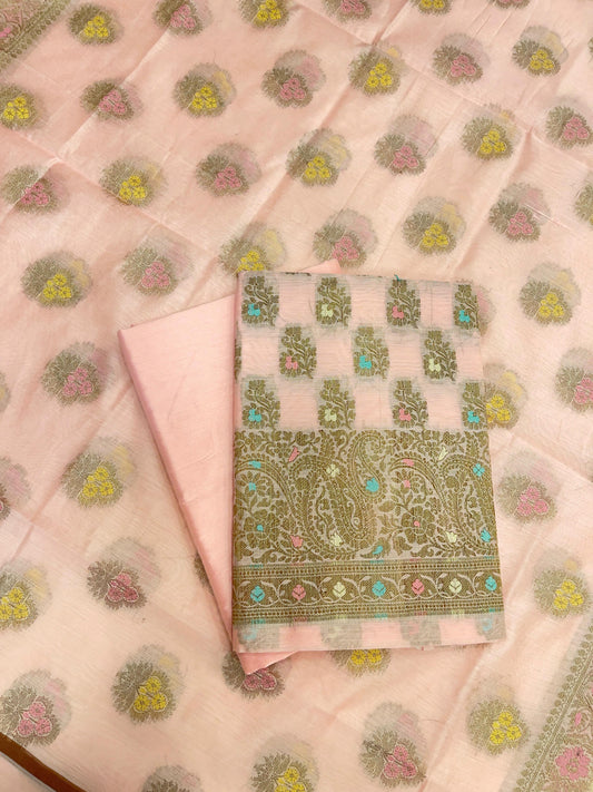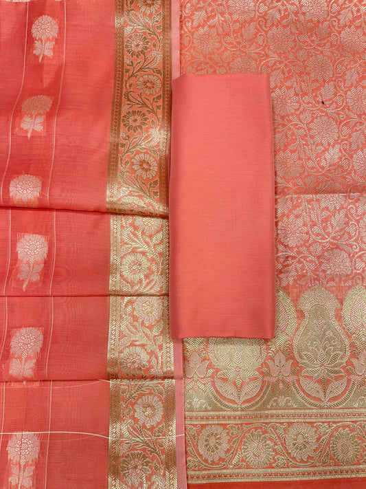 Peach Cotton Silk Banarasi 3 pcs Suit Set 680ASD_CS24