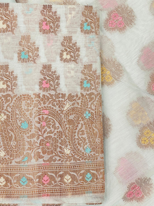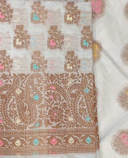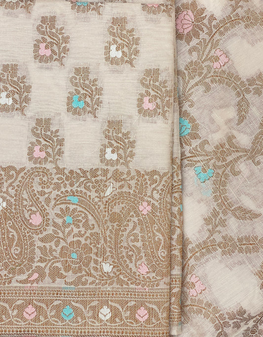 Beige Cotton Linen Embroidery Banarasi 3 pcs Suit Set 1200IM_CL1