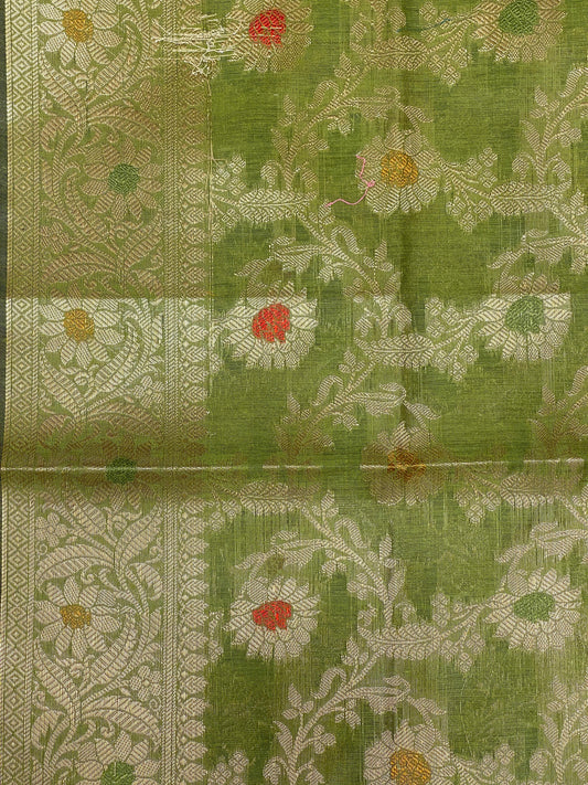 Pista Green Cotton Linen Embroidery Banarasi 3 pcs Suit Set 1200IM_CL7
