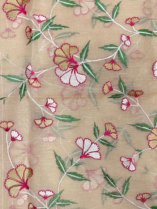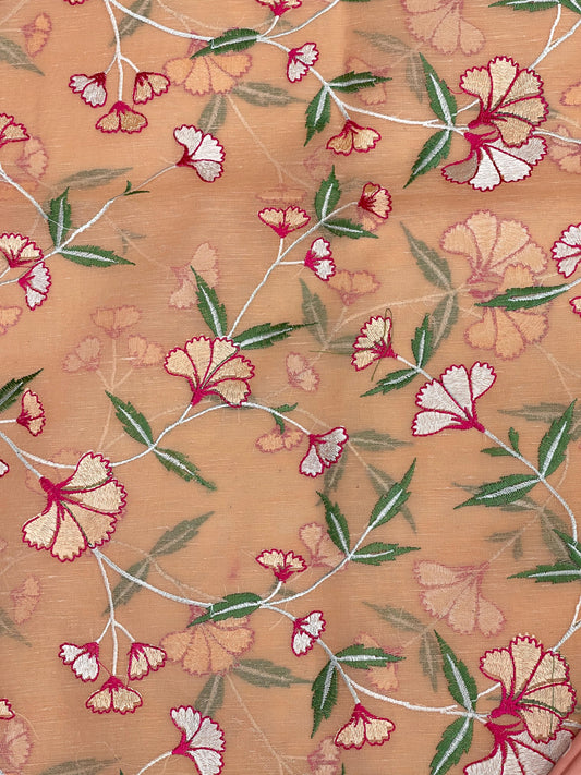 Peach Cotton Linen Embroidery Banarasi 3 pcs Suit Set 1200IM_CL6