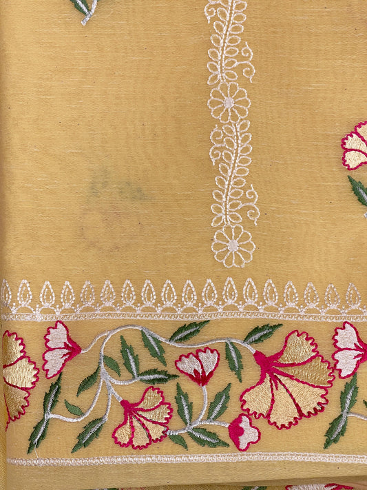Yellow Cotton Linen Embroidery Banarasi 3 pcs Suit Set 1200IM_CL5