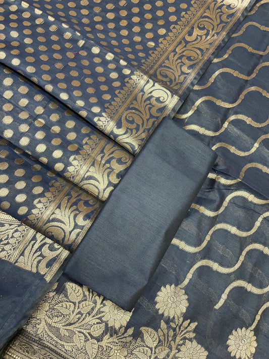 Grey Cotton Silk Banarasi 3 pcs Suit Set 680ASD_CS30