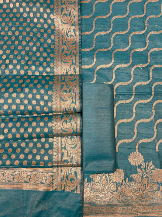 Seagreen Cotton Silk Lehariya Banarasi 3 pcs Suit Set 675JVC_106