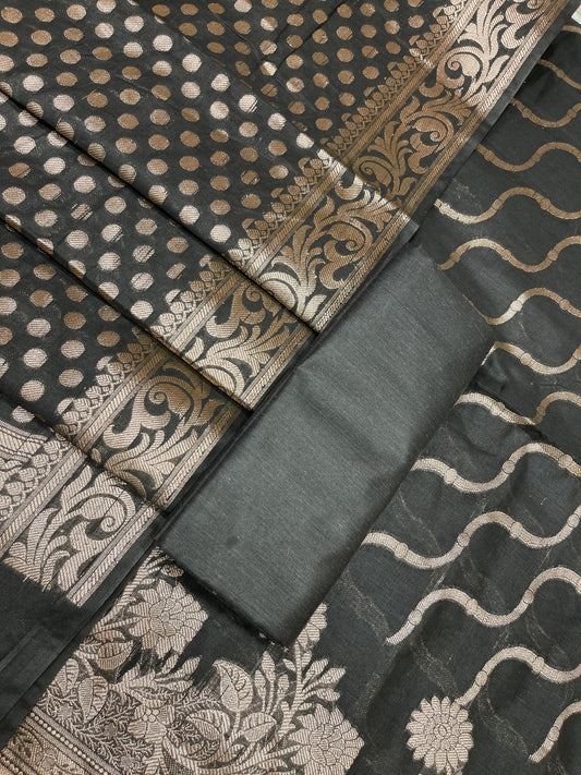 Black Cotton Silk Banarasi 3 pcs Suit Set 680ASD_CS33