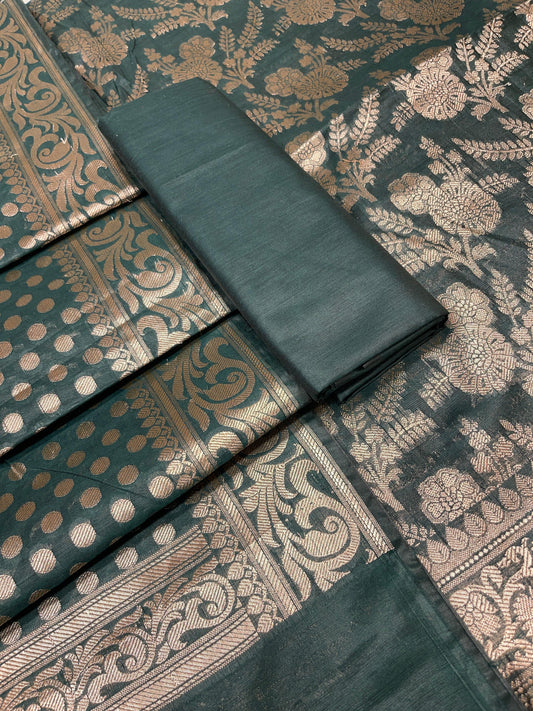 Dark Green Cotton Silk Boota Banarasi 3 pcs Suit Set 675JVC_108