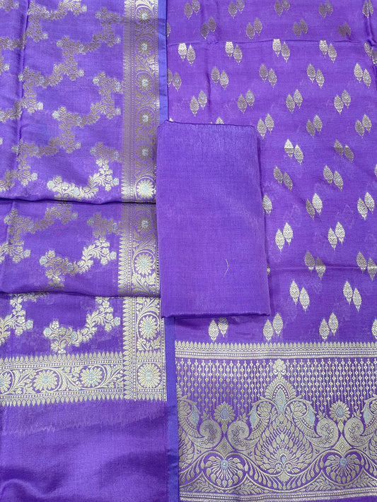Puresilk Handloom Purple Viscose Silk Banarasi 3 pcs Suit Set RHN_VS1