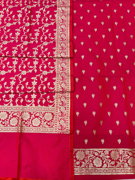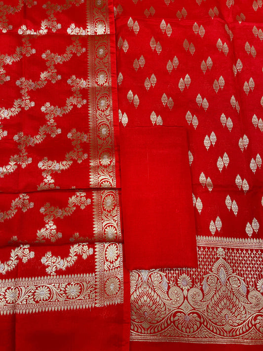 Puresilk Handloom Red Viscose Silk Banarasi 3 pcs Suit Set RHN_VS2