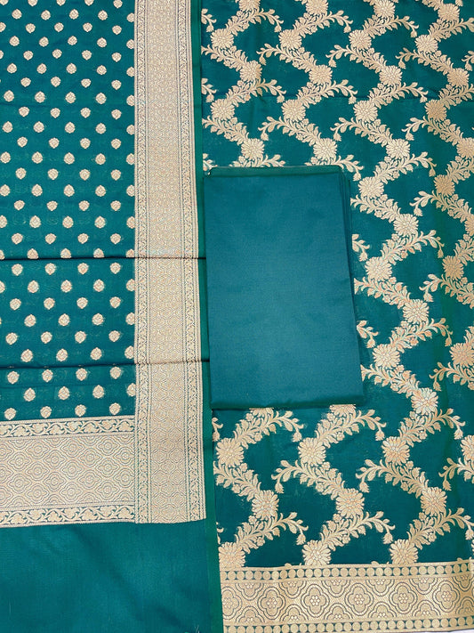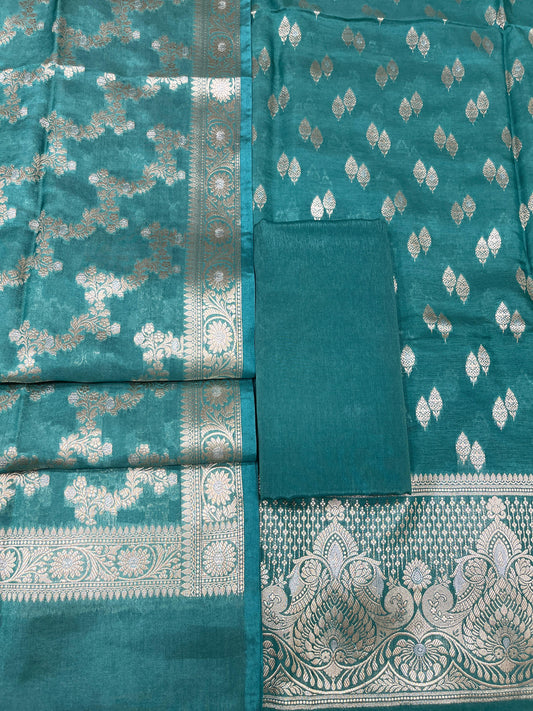 Puresilk Handloom Seagreen Viscose Silk Banarasi 3 pcs Suit Set RHN_VS5