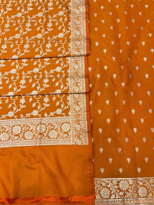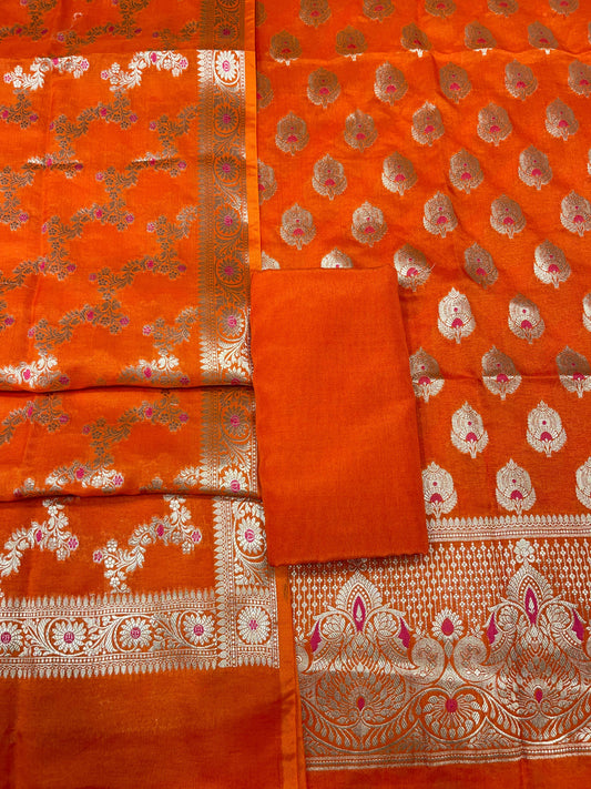 Puresilk Handloom Orange Viscose Silk Banarasi 3 pcs Suit Set RHN_VS6