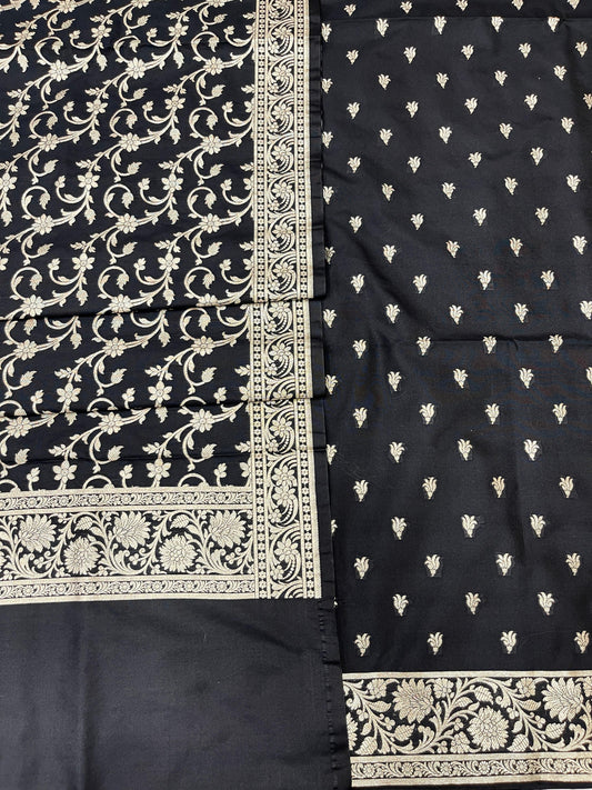 Puresilk Handloom Black Viscose Silk Banarasi 3 pcs Suit Set RHN_VS4