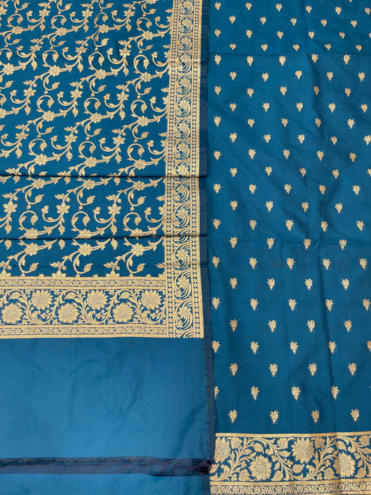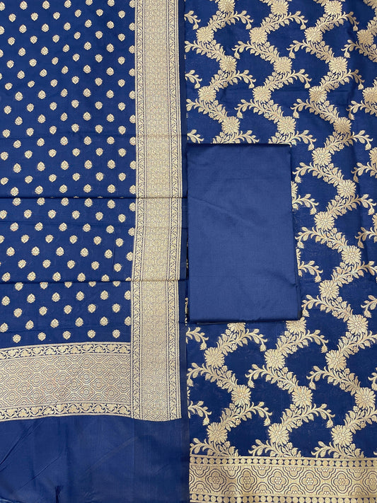 Puresilk Handloom Blue Viscose Silk Banarasi 3 pcs Suit Set RHN_VS9
