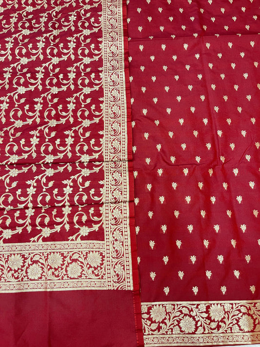 Puresilk Handloom Maroon Mulberry Silk Banarasi 3 pcs Suit Set RHN_MEL3