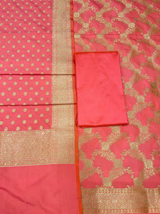 Puresilk Handloom Peach Pink Cotton Banarasi 3 pcs Suit Set RHN_CTN11