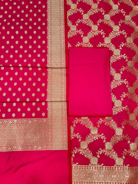 Puresilk Handloom Georgia Pink Cotton Banarasi 3 pcs Suit Set RHN_CTN7