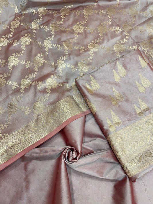 Pink Semi Katan Silk Handloom Banarasi 3 pcs Suit Set MUB_SK3