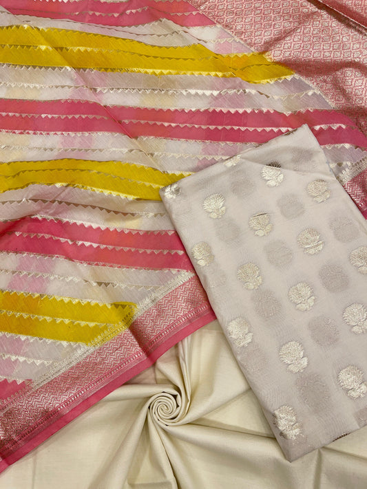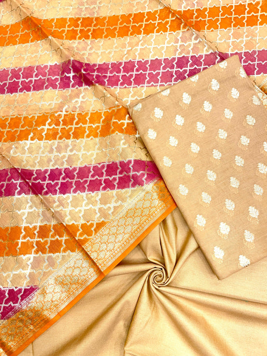 Beige Semi Katan Silk Handloom Banarasi 3 pcs Suit Set MUB_SK4