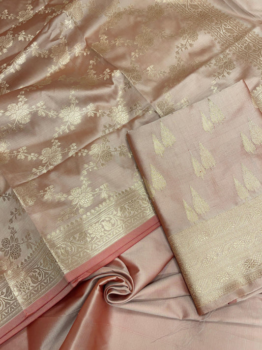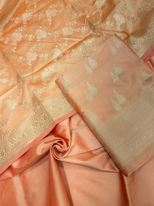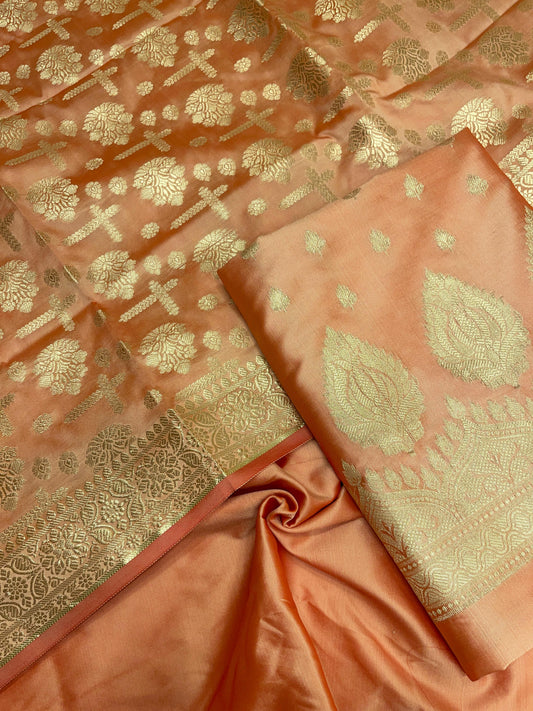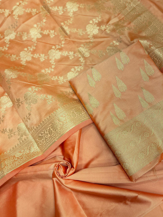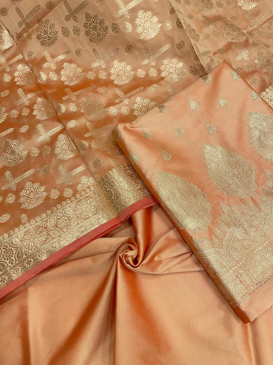 Peach Semi Katan Silk Handloom Banarasi 3 pcs Suit Set MUB_SK7