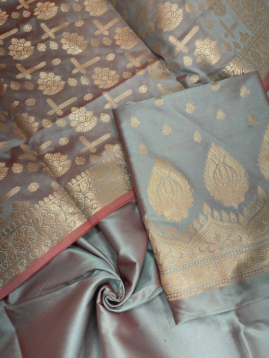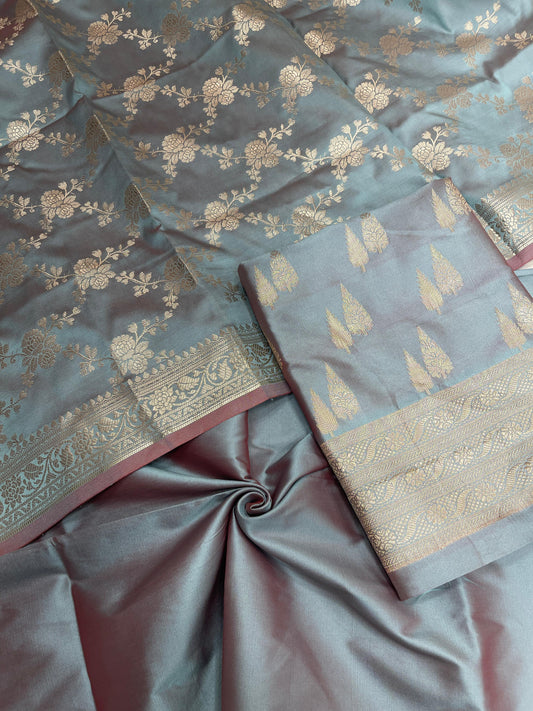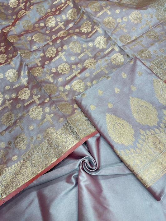 Light Purple Semi Katan Silk Handloom Banarasi 3 pcs Suit Set MUB_SK10