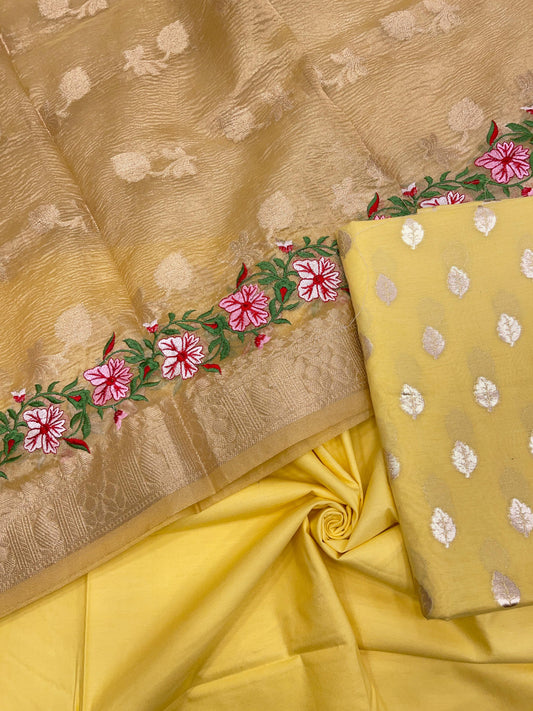 Yellow Pure Cotton Embroidery Tissue Dupatta Banarasi 3 pcs Suit Set IM_PCEM1