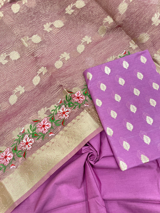 Lavender Pure Cotton Embroidery Tissue Dupatta Banarasi 3 pcs Suit Set IM_PCEM5