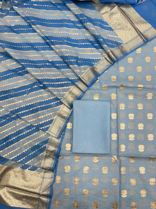 Blue Pure Cotton Self Design Banarasi 3 pcs Suit Set IM_PCSD3