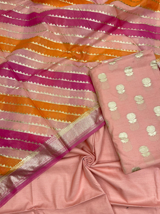 Peach Pure Cotton Self Design Banarasi 3 pcs Suit Set IM_PCSD2
