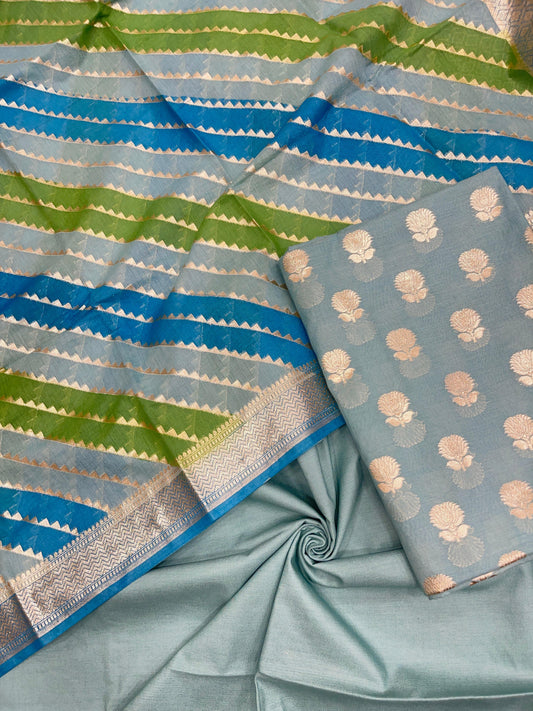 Seagreen Semi Katan Silk Handloom Banarasi 3 pcs Suit Set MUB_SK6