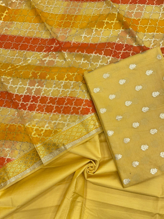 Yellow Pure Cotton Self Design Banarasi 3 pcs Suit Set IM_PCSD4