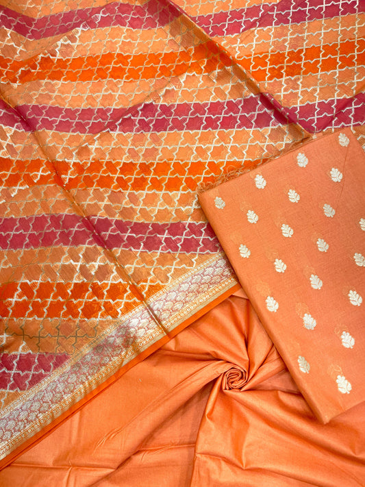 Orange Semi Katan Silk Handloom Banarasi 3 pcs Suit Set MUB_SK1