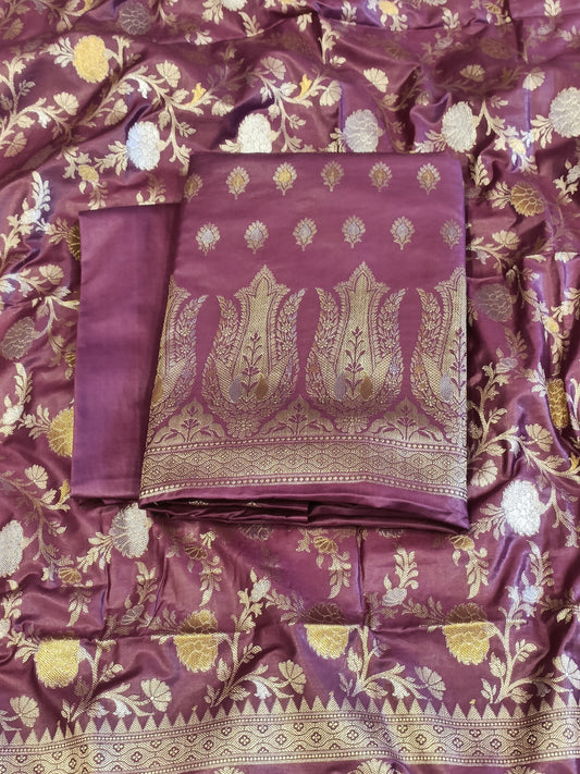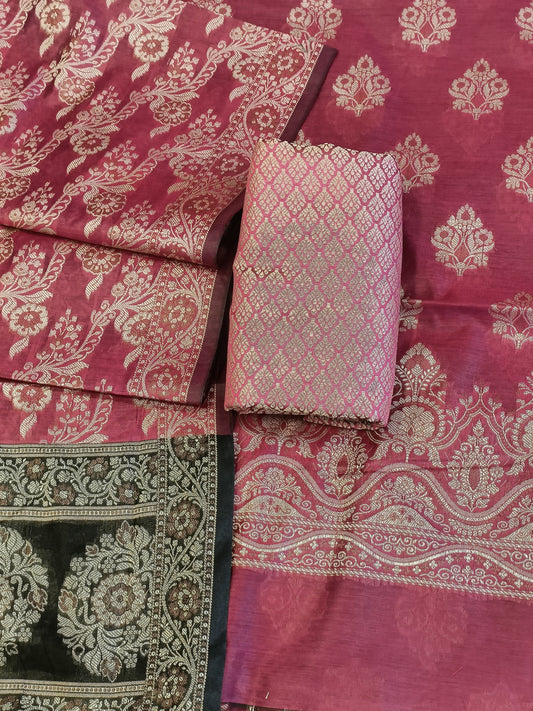 Magenta Cotton Dyable Alfi Zari Booti Banarasi Suit with Floral Zari Jaal Banarasi Suit 13SHL_DAS6
