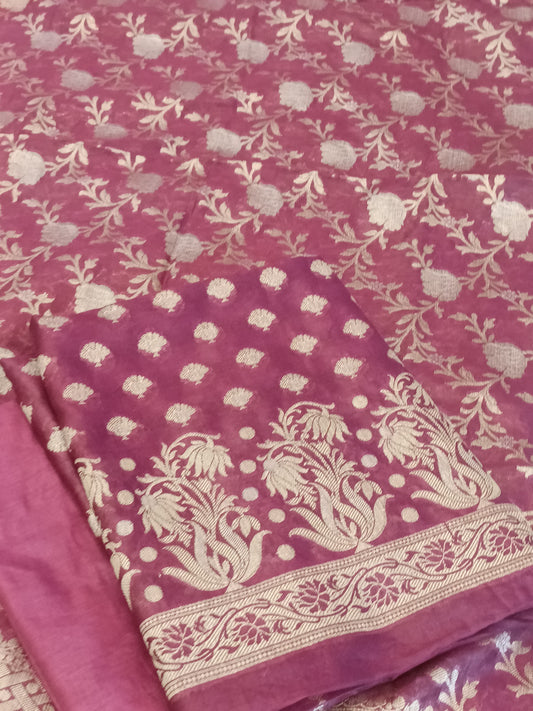 Light Magenta Cotton Floral Zari Booti with Contrast Magenta Silk Border Banarasi Suit 525IM_CTN7