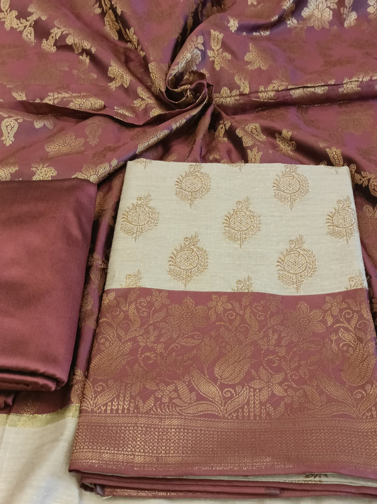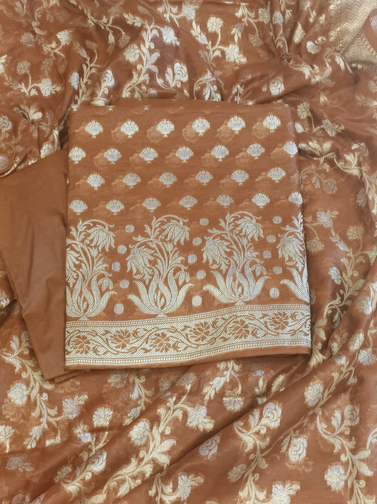 Brown Cotton Dyable Alfi Zari Booti Banarasi Suit with Floral Zari Jaal Banarasi Suit 13SHL_DAS1