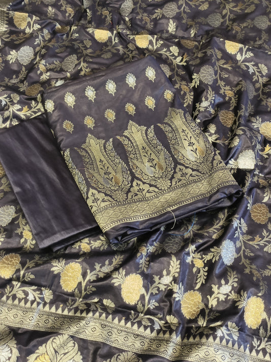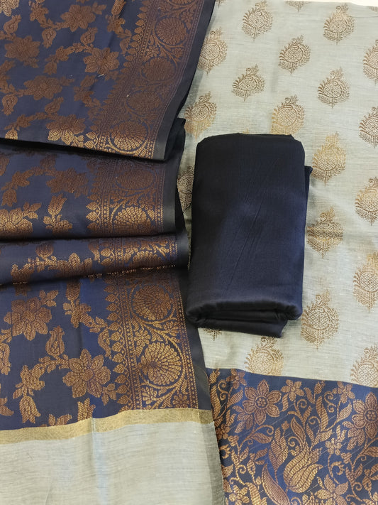 Navy Blue Cotton Dyable Alfi Zari Booti Banarasi Suit with Floral Zari Jaal Banarasi Suit 13SHL_DAS5
