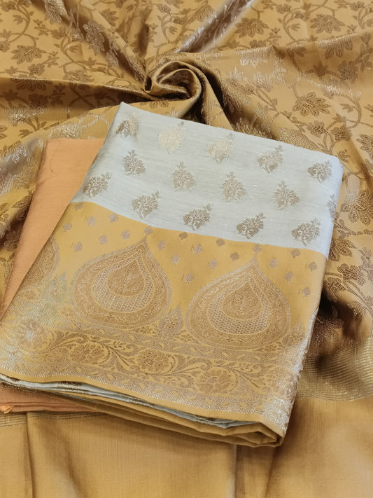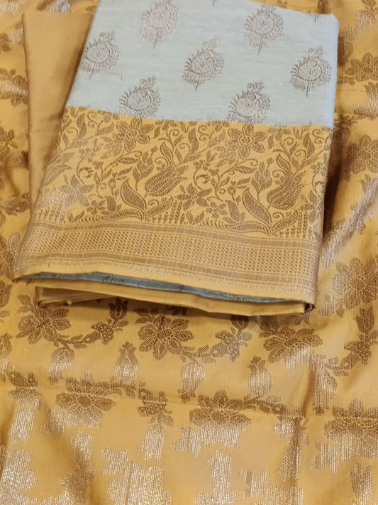 Tussar Cotton Floral Zari Booti with Contrast Mustard Gold Silk Border Banarasi Suit 525IM_CTN2