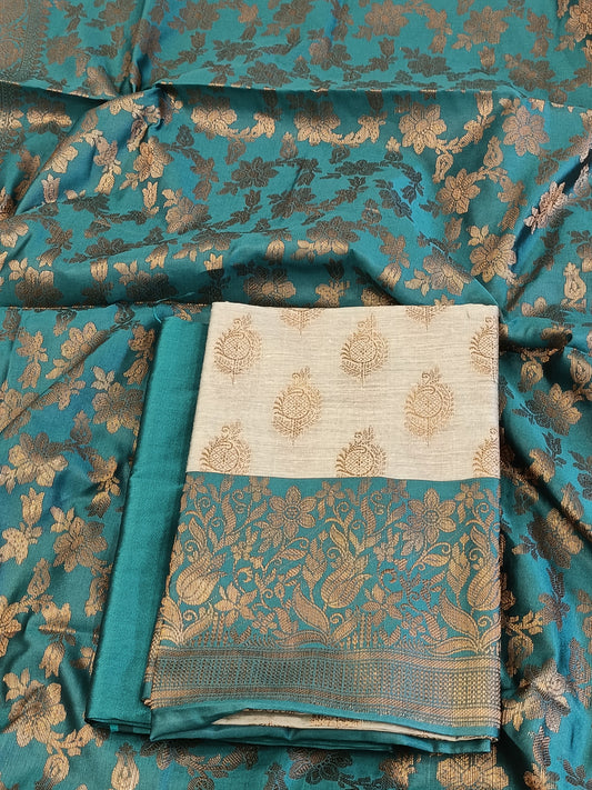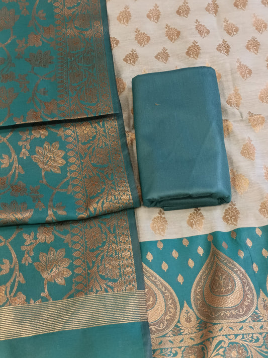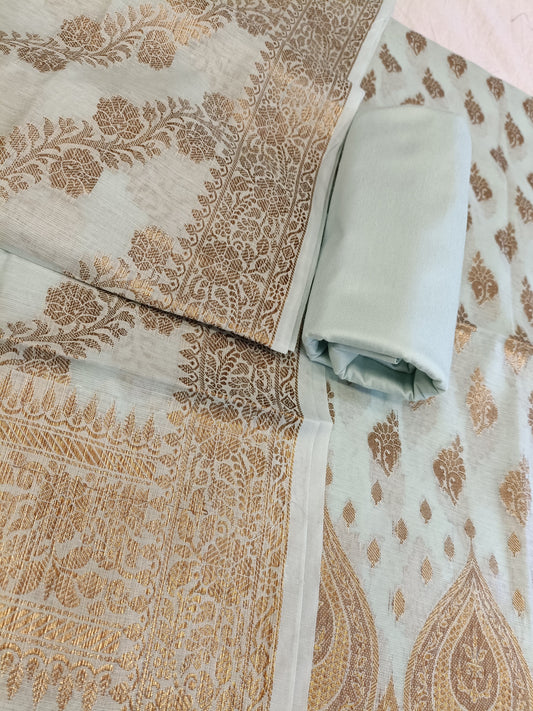 Seagreen Cotton Dyable Alfi Zari Booti Banarasi Suit with Floral Zari Jaal Banarasi Suit 13SHL_DAS3