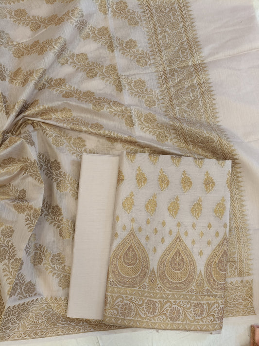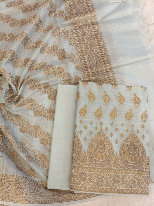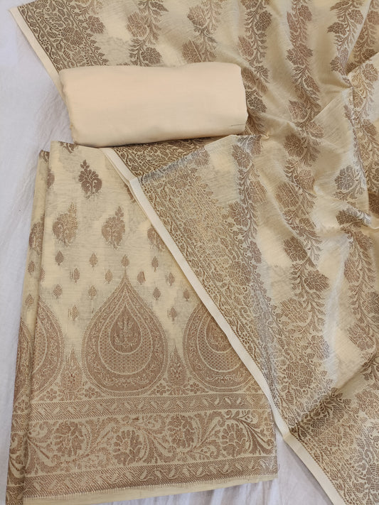 Tussar Cotton Floral Zari Booti with Contrast Brown Silk Border Banarasi Suit 525IM_CTN11