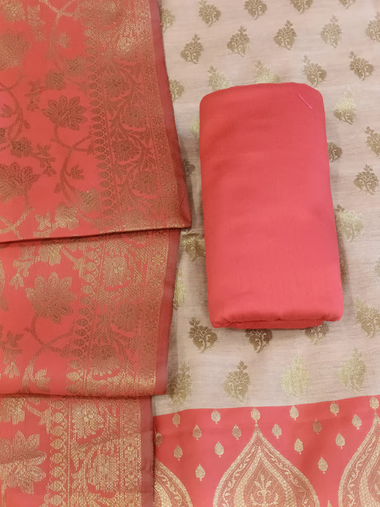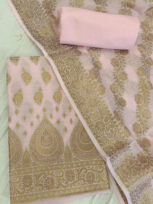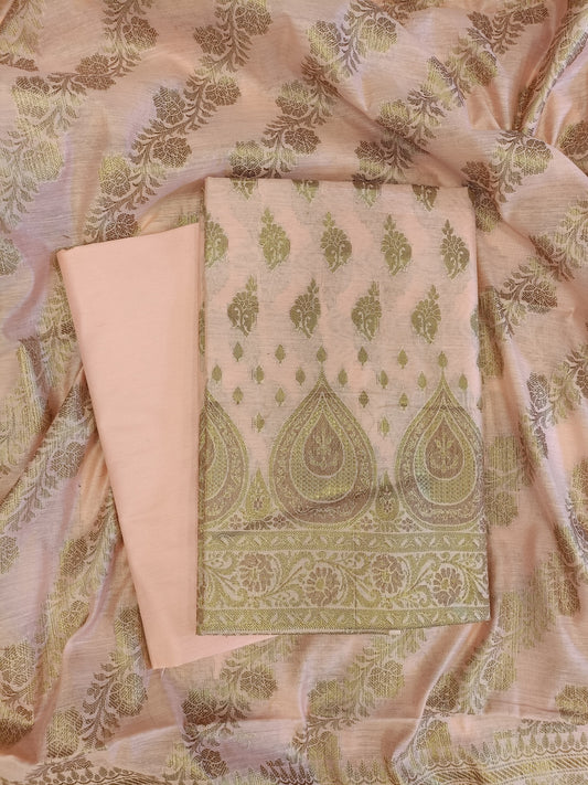 Peach Cotton Alfi Zari Booti Banarasi 3 pcs Suit Set 525IM_CTN15