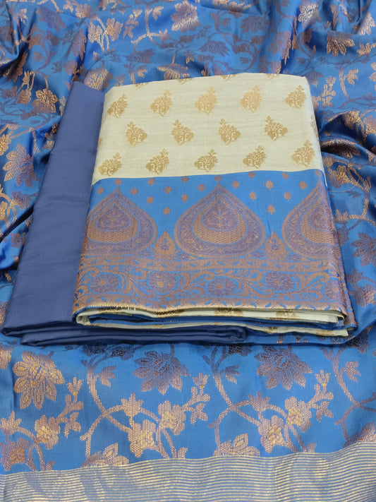 Light Blue Cotton Floral Zari Booti with Contrast Blue Silk Border Banarasi Suit 525IM_CTN6
