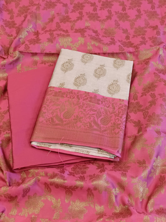 Pink Cotton Alfi Zari Booti Banarasi 3 pcs Suit Set 525IM_CTN17