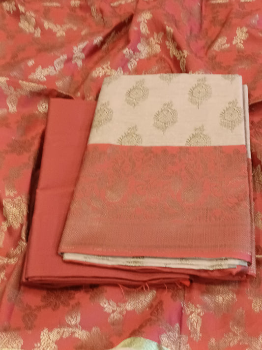 Tussar Cotton Floral Zari Booti with Contrast Red Silk Border Banarasi Suit 525IM_CTN5