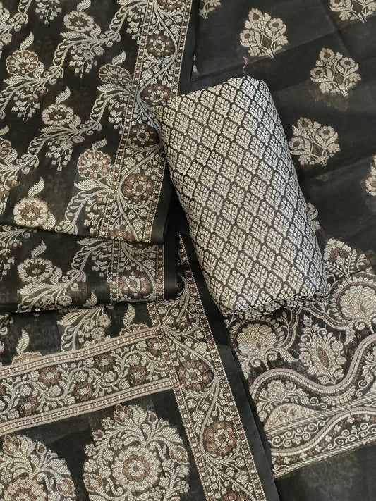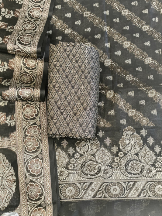 Black Cotton Floral Resham Boota Banarasi Suit with Resham Jaal Dupatta Banarasi Suit 600AJ_PJS30