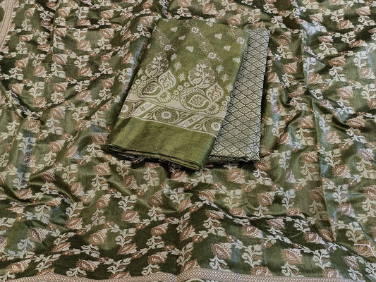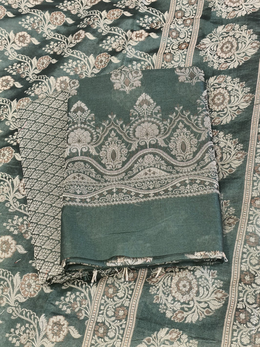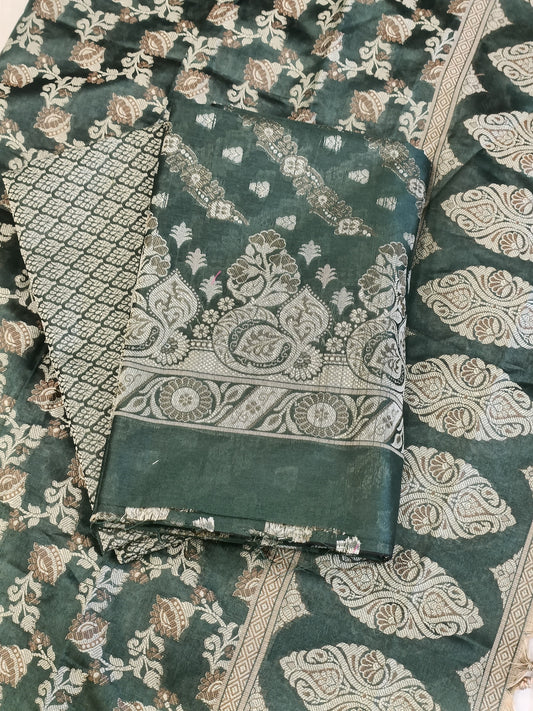 Darkgreen Cotton Dyable Alfi Zari Booti Banarasi Suit with Floral Zari Jaal Banarasi Suit 13SHL_DAS2