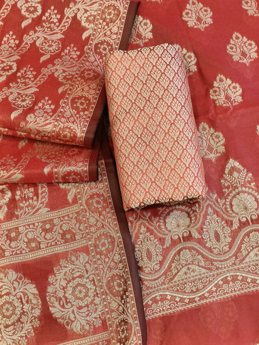 Light Red Cotton Floral Resham Boota Banarasi Suit with Resham Jaal Dupatta Banarasi Suit 600AJ_PJS26