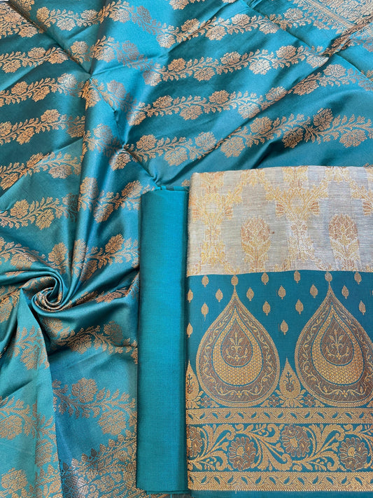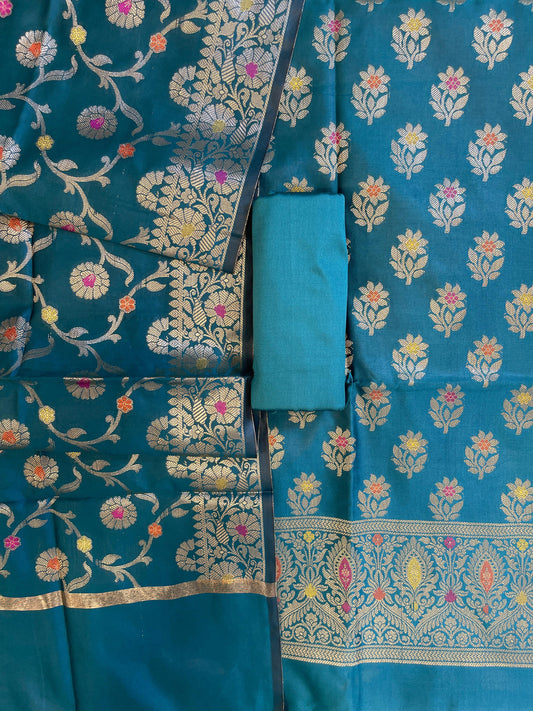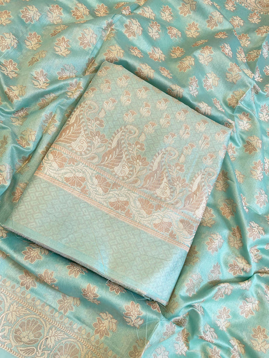 Seagreen Tapeta Silk Floral Dual Zari Booti with Zari Jaal Dupatta Banarasi Suit 625AJ_TPT76