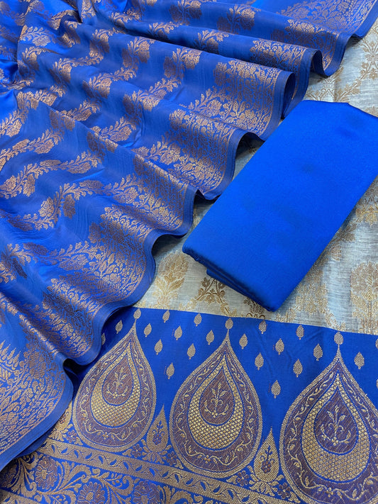 Light Blue Cotton Alfi Zari Jaal Contrast Royal Blue Silk Border Banarasi Suit 55IM_CTN9